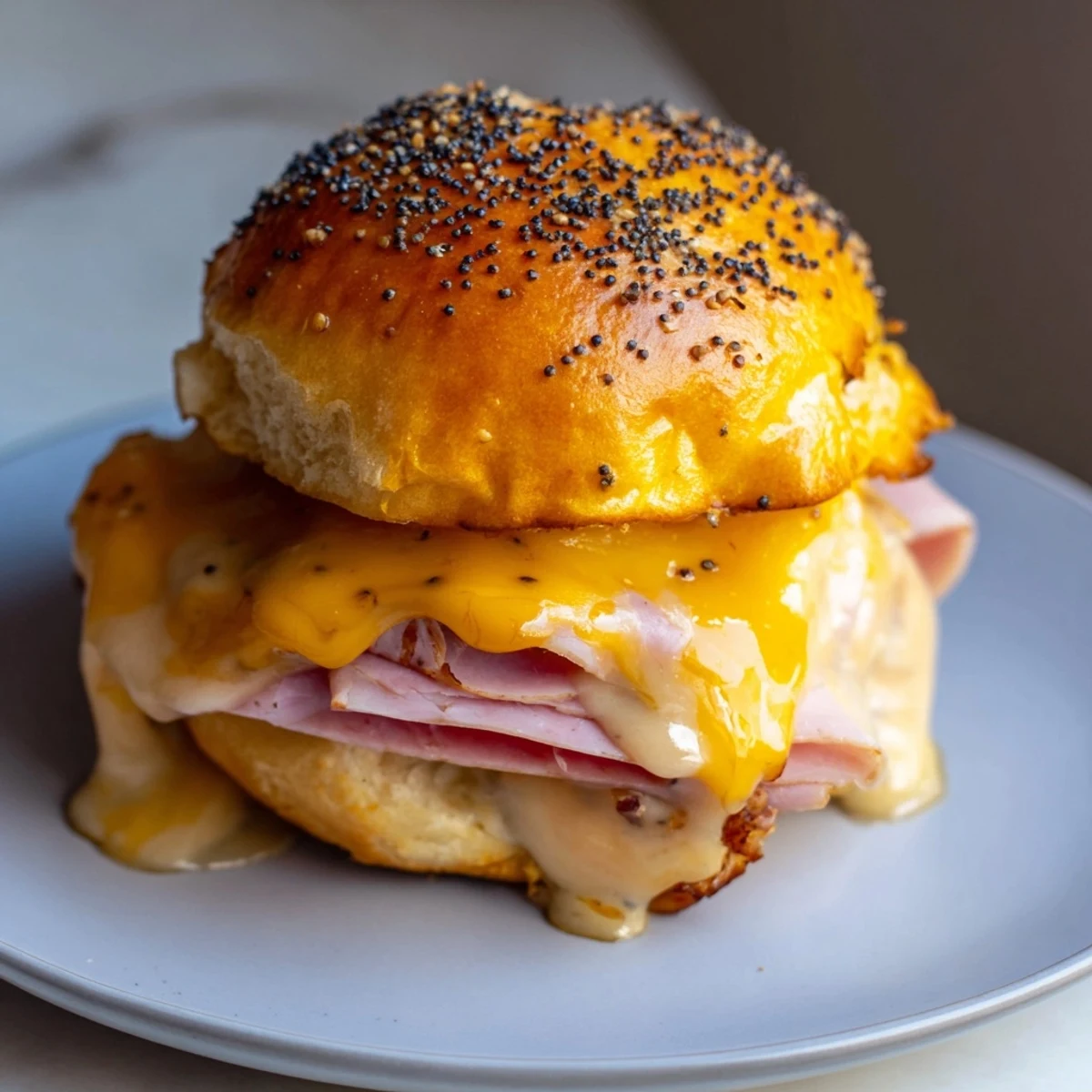 Save to Pins Warm, gooey, and irresistibly savory, these sliders are the ultimate crowd-pleaser for gatherings, game days, or potlucks. Soft rolls are layered with ham and Swiss cheese, topped with a buttery, tangy glaze, and baked until melty and golden.