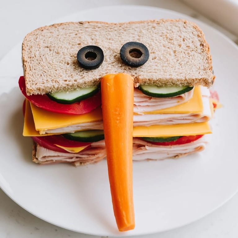 Save to Pins A whimsical and hearty platter featuring playful, elephant-shaped sandwiches, perfect for childrens parties or circus-themed gatherings.