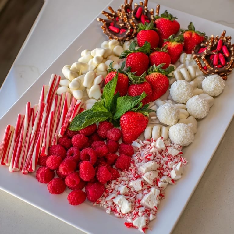 Mix and match red and white treats according to preference or dietary needs For a gluten-free platter, ensure all treats are certified gluten-free Add other red or white fruits like pomegranate seeds or white grapes for variety Pair with hot cocoa, coffee, or holiday cocktails