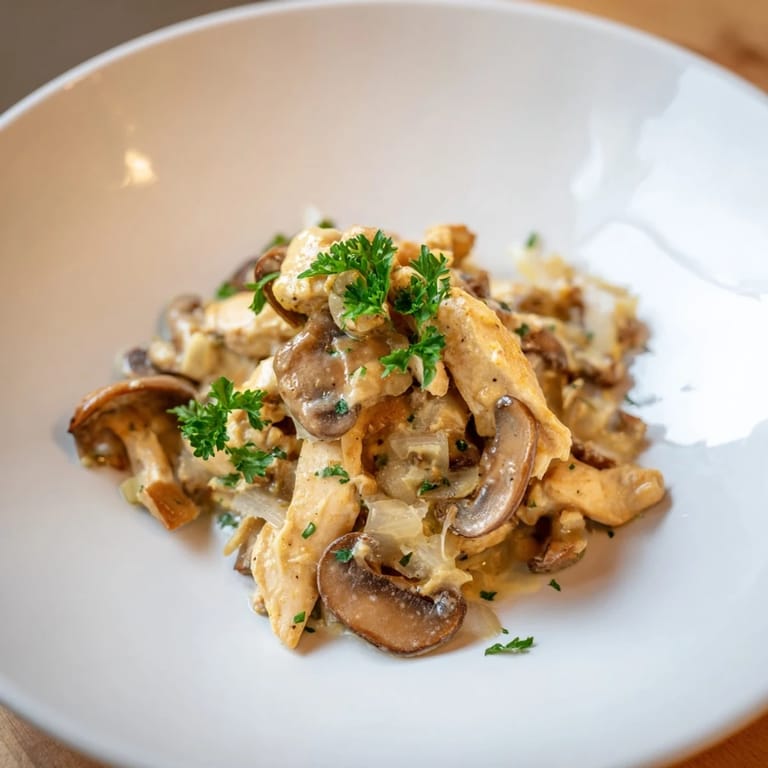 Save to Pins A comforting and flavorful dish featuring tender chicken in a rich, creamy mushroom sauce, perfect over noodles or rice.