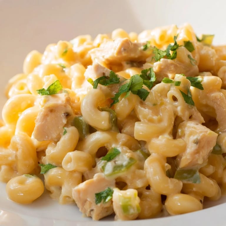 Save to Pins The first time I made green chili chicken mac, it was purely out of desperation on a Tuesday night when the refrigerator held nothing but random leftovers. My husband walked in mid stir and asked what that incredible smell was and I honestly had to think about it because I had just thrown things together. Now it has become one of those meals I can make without even looking at the recipe, which is funny considering that first attempt was almost a disaster when I accidentally dumped too much cumin in. Something about the way the smoky spices hit the creamy cheese sauce just clicked, and now whenever friends ask for comfort food recommendations, this is always the first thing I mention.