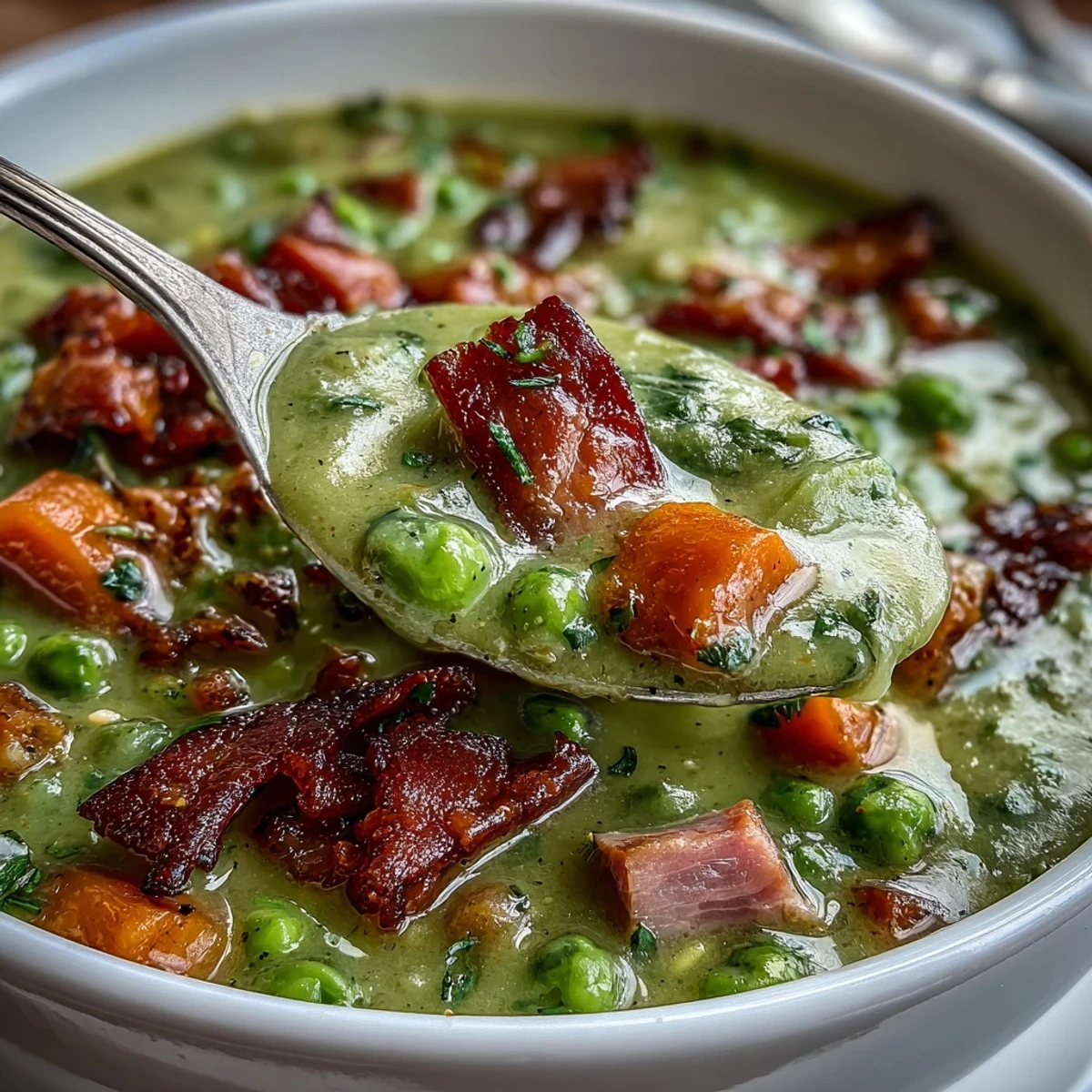 Save to Pins A hearty, classic comfort soup featuring smoky ham, creamy split peas, and sweet carrots for a nourishing, flavorful meal. This Easy American favorite is perfect for chilly evenings, providing 320 calories and 22g of protein per serving in a naturally gluten-free dish.