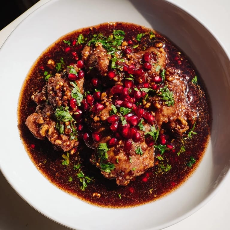 I made this for friends who'd never had Persian food before, and the moment someone broke through that tangy pomegranate layer to the tender meat underneath, the whole table went quiet. Not awkward quiet—the kind where everyone's too busy tasting to talk. That's when I knew this dish does something most recipes can't: it surprises people who think they already know what food should taste like.