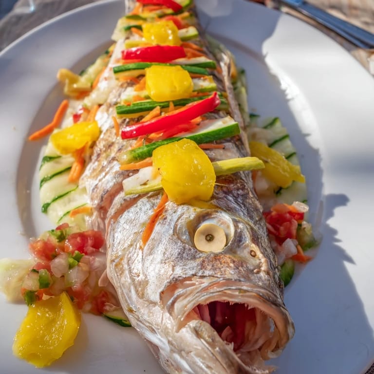 Save to Pins A playful, healthy dish designed in the shape of a fish, featuring fresh vegetables and tender white fish fillet. Perfect for a light lunch or an elegant starter.