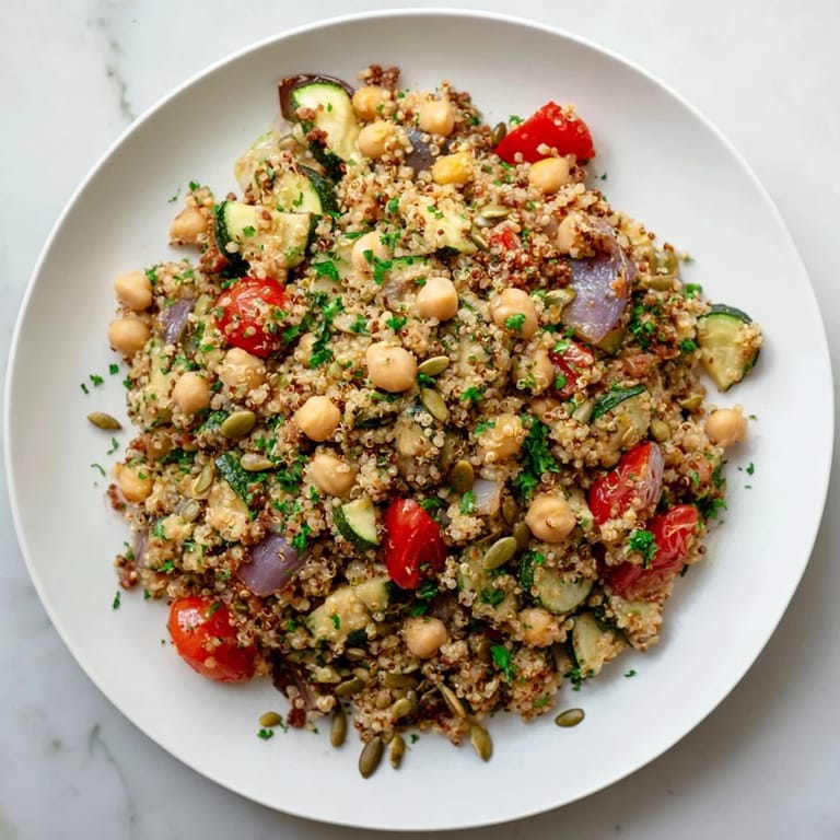 Save to Pins I discovered this salad on a humid Tuesday afternoon when my kitchen felt too warm for anything heavy. A friend had mentioned she'd been eating the same thing for lunch all week—something with quinoa and tahini—and I was curious enough to experiment. The first time I made it, I roasted the vegetables while the quinoa simmered, and the smell of caramelizing peppers and zucchini pulled me back to the stove three times in twenty minutes. It became my answer to that familiar 3 p.m. energy dip, the kind where you need real food but nothing that weighs you down.