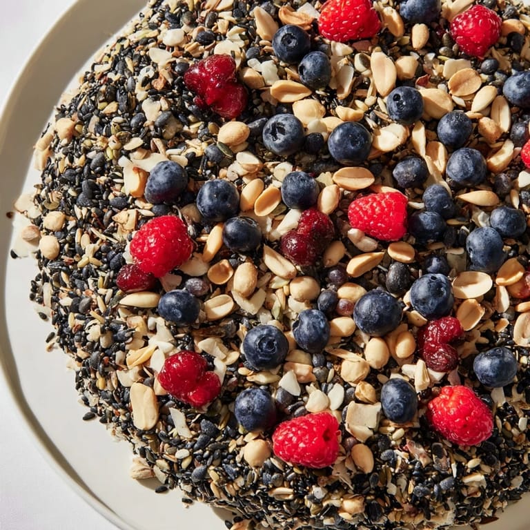 Save to Pins A vibrant, nutritious platter designed for garden songbirds, featuring a colorful array of seeds, nuts, and fresh berries to attract a variety of feathered friends.